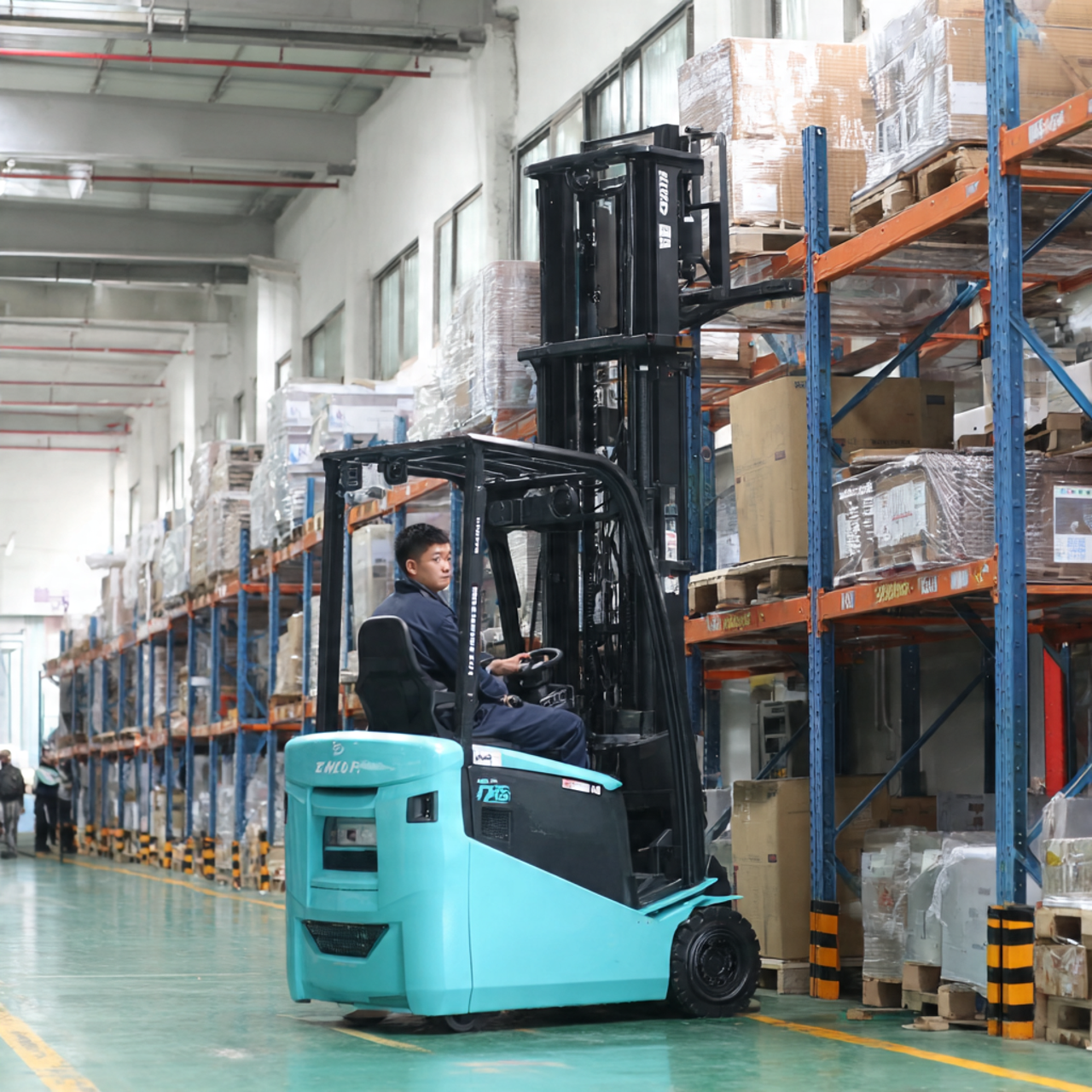 Hình 2: Xe nâng điện hoạt động trong kho hàng – giải pháp xanh, tiết kiệm chi phí