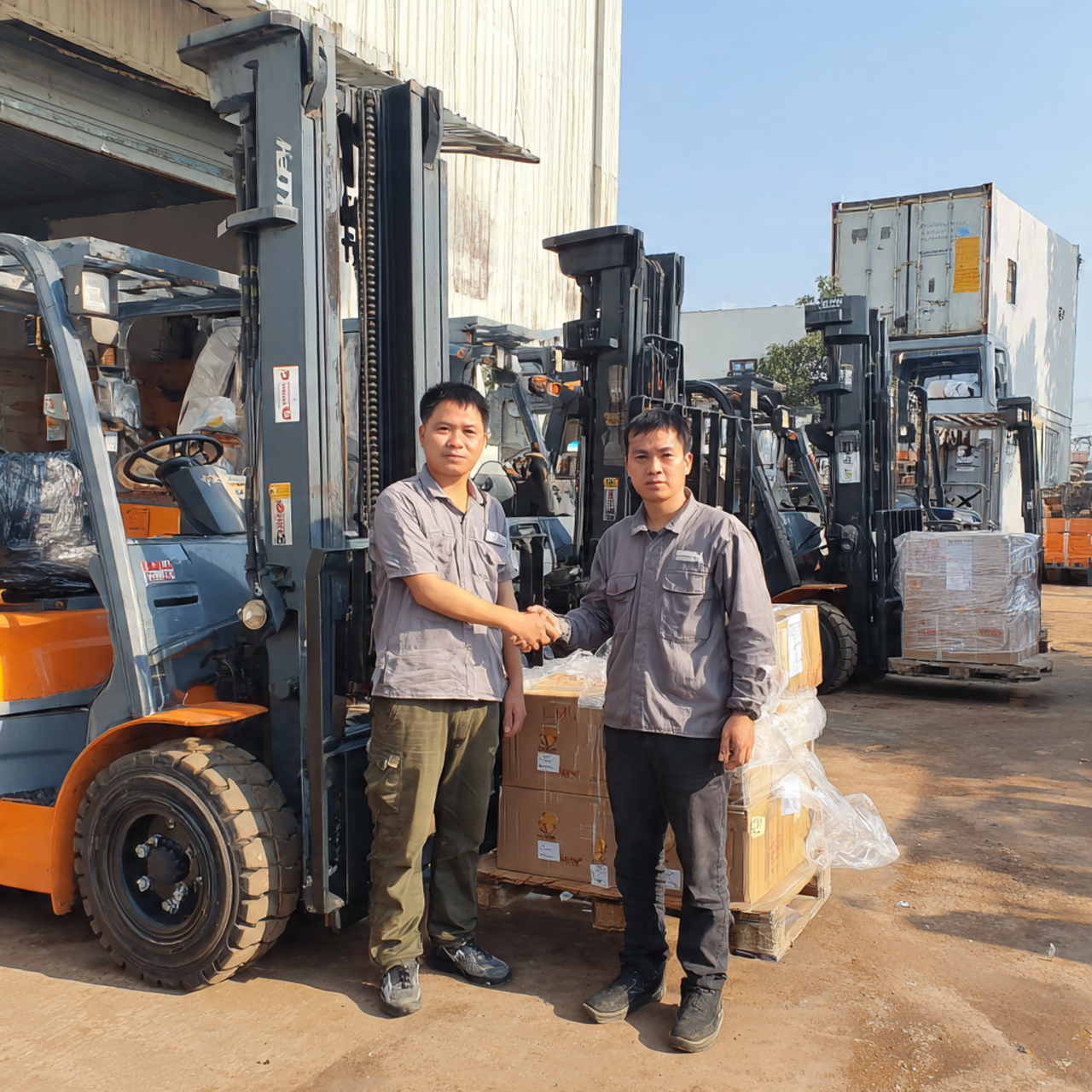 🖼️ Hình 3: Kỹ thuật viên Xe Nâng Nguyễn Tuấn bàn giao xe cho khách tại Quận Bình Tân – TPHCM