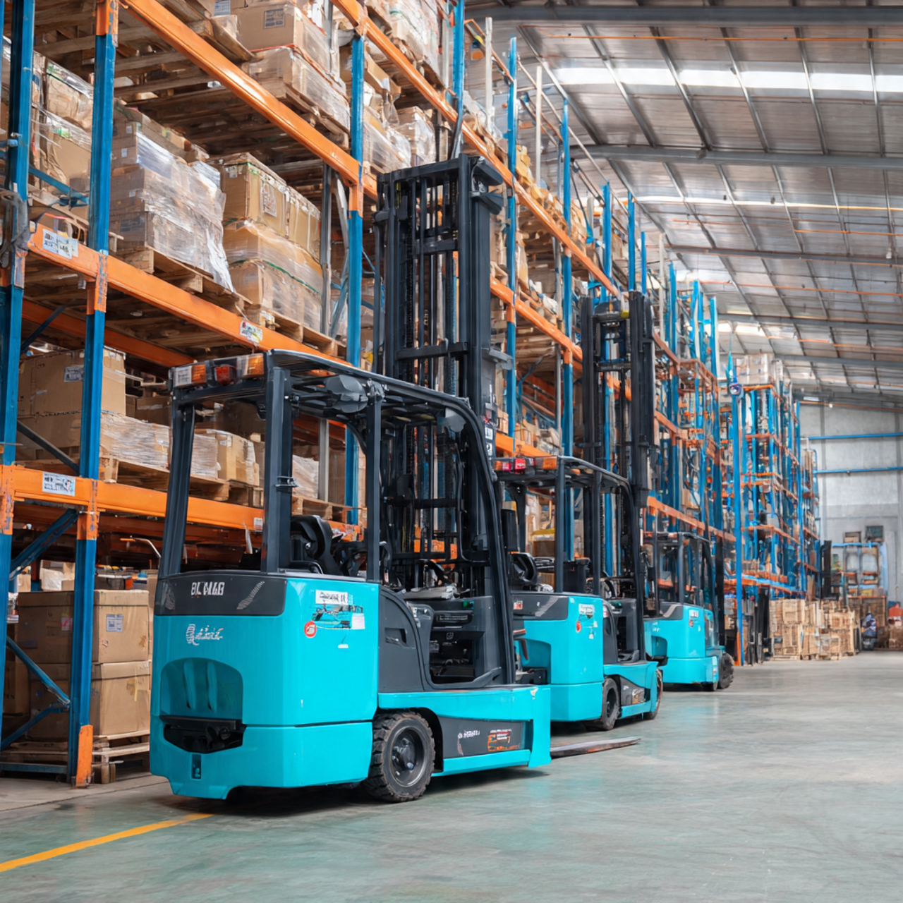🖼️ Hình 1: Xe nâng điện hoạt động trong kho kín tại TPHCM – giải pháp xanh, tiết kiệm năng lượng.