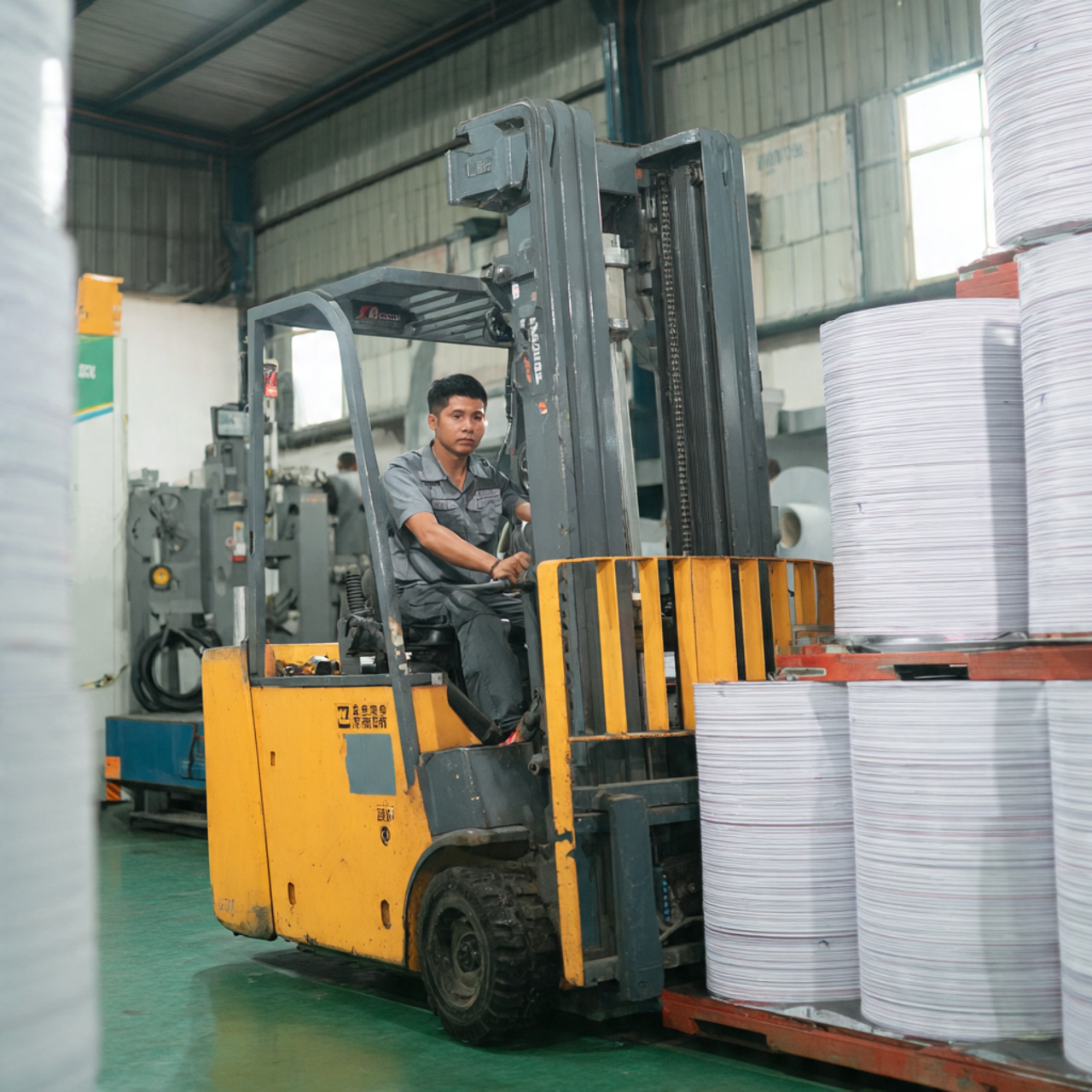 🖼️ Hình 5: Xe nâng đa năng kẹp giấy cuộn trong nhà máy in ấn tại TPHCM.