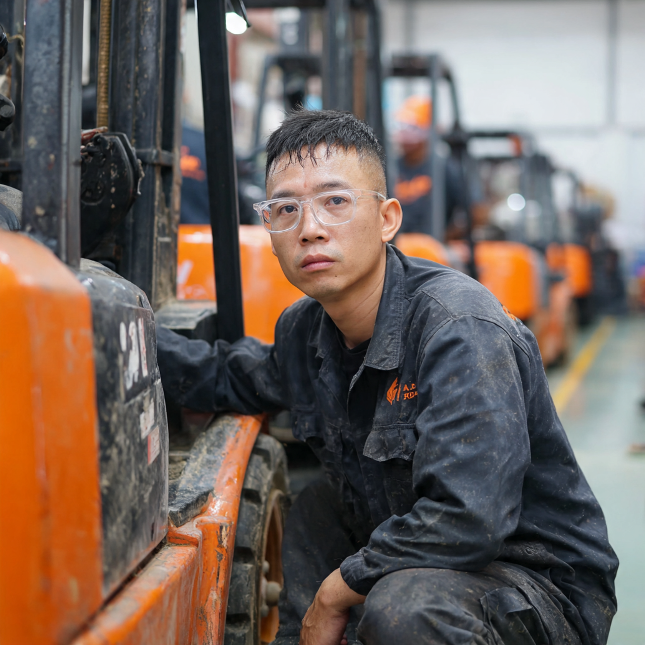 Hình 4: Kỹ thuật viên Xe Nâng Nguyễn Tuấn bảo dưỡng xe nâng cho khách hàng.
